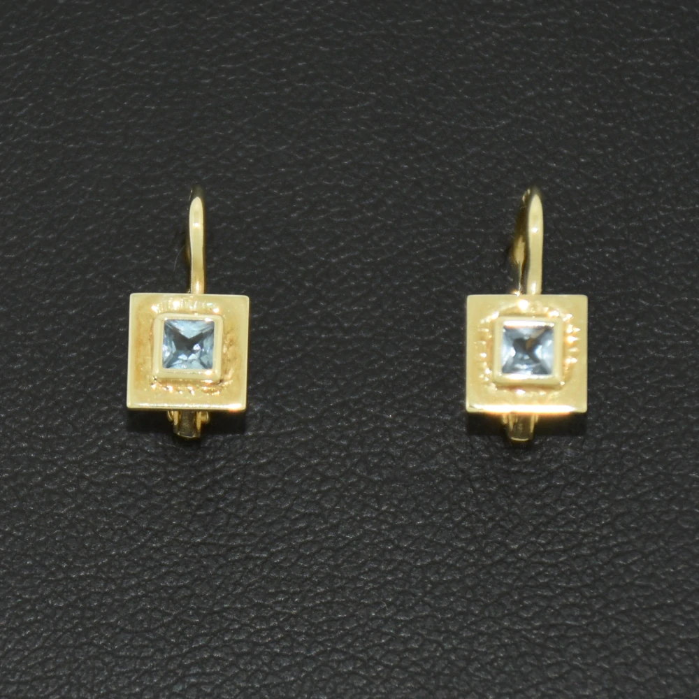 Zlaté náušnice - klasické s modrým kamenem