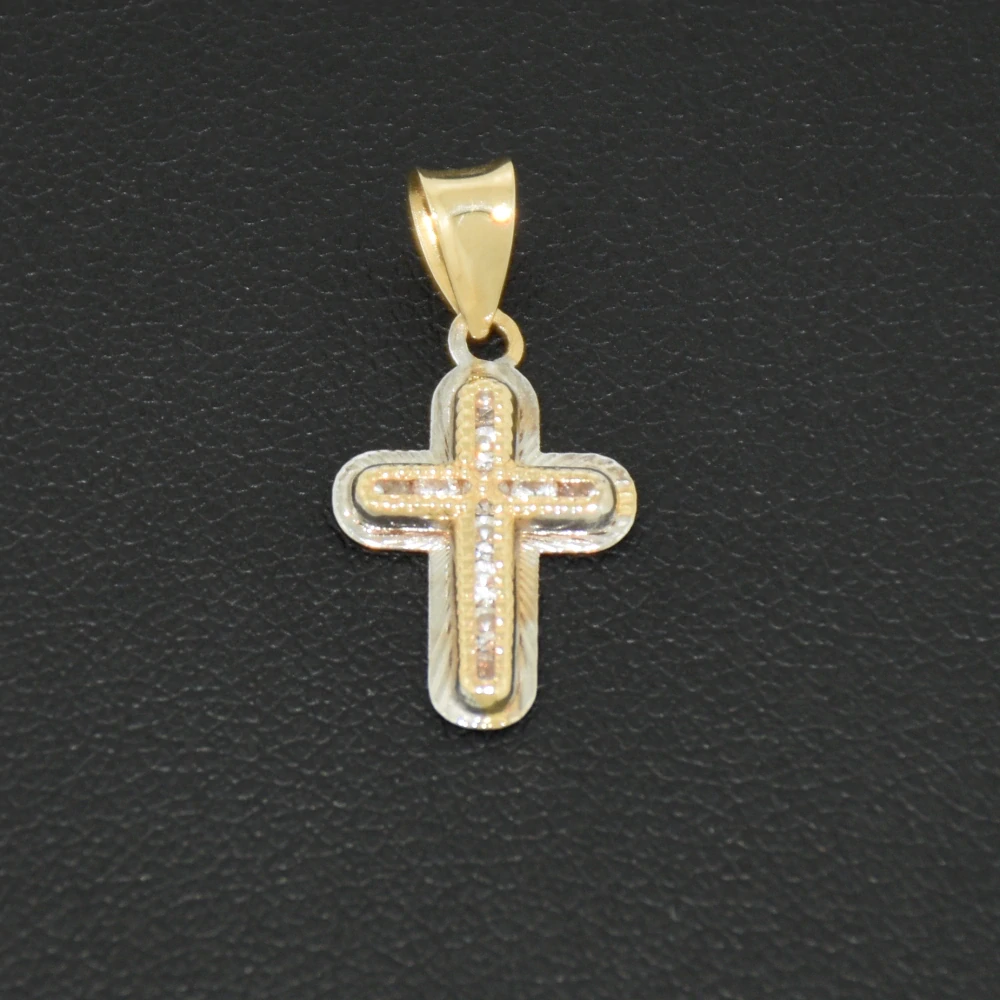Zlatý přívěsek - křížek - kombinace žlutého a bílého zlata se zirkony